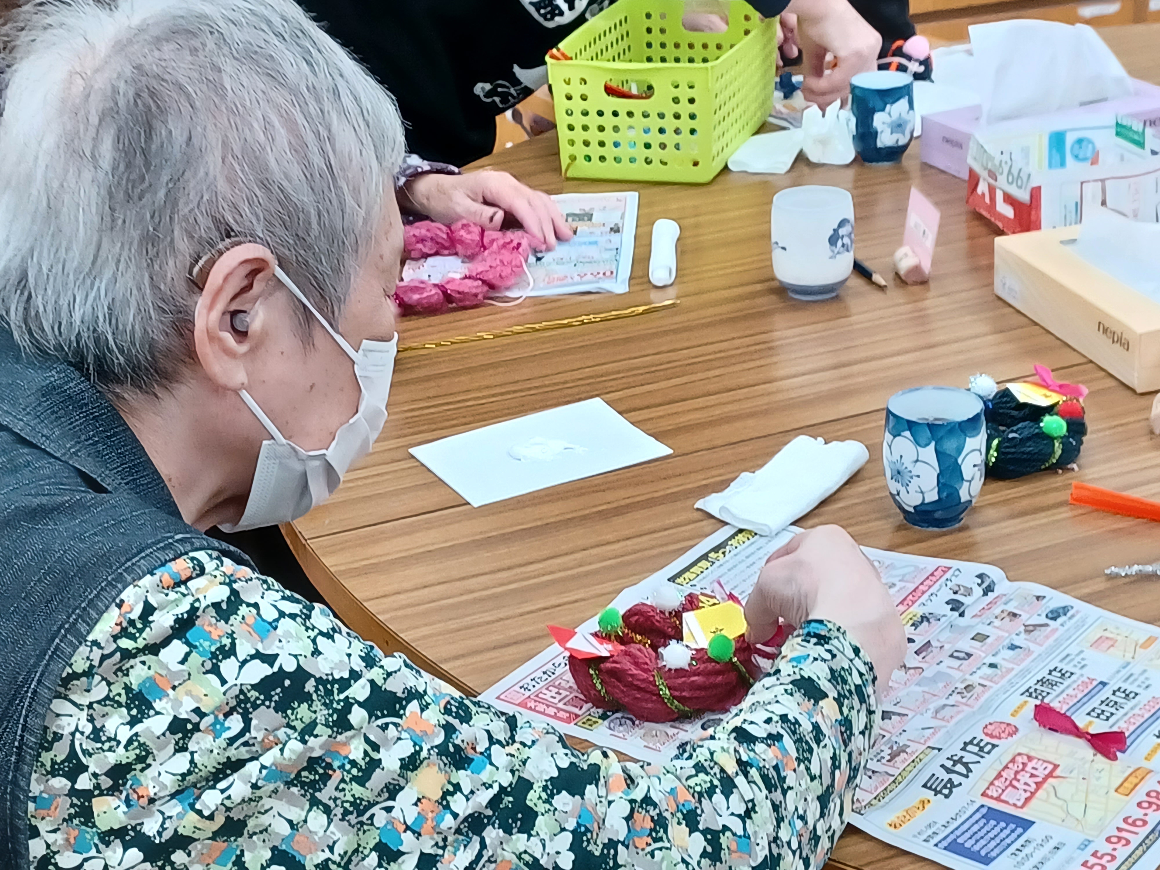 デイサービスでは、ご利用者様が季節季節で、いろんなものを製作し作品としてご自宅に持ち帰ります。